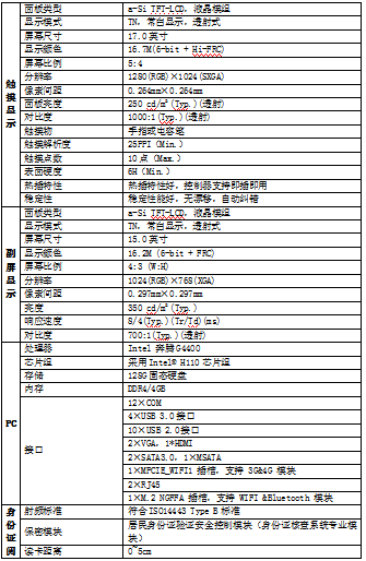 17英寸主顯示屏,1280*1024分辨率